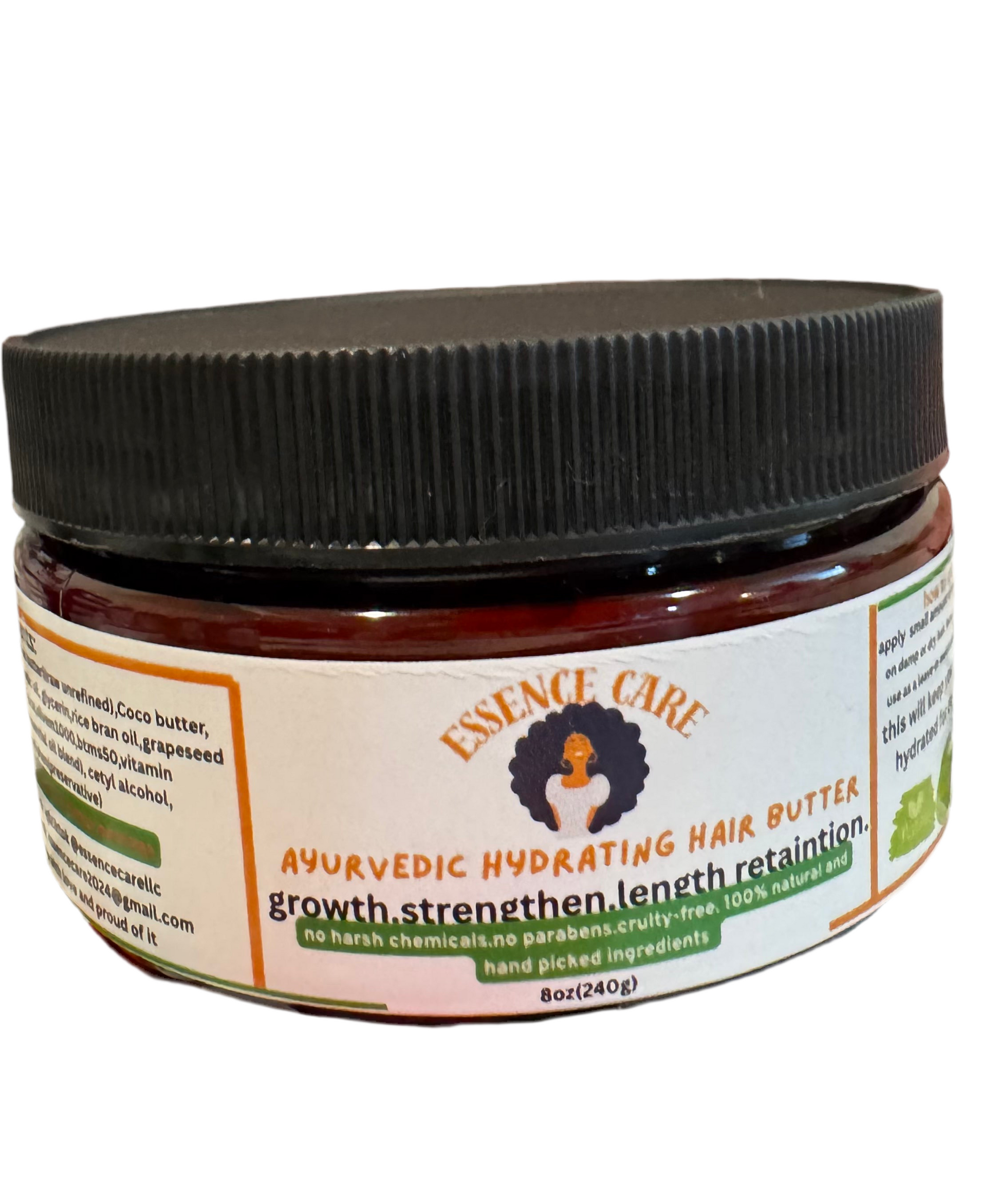 Nourish your hair with the power of Ayurvedic herbs and rich plant butters. Our Ayurvedic Hydrating Hair Butter is a luxurious, creamy blend crafted to deeply hydrate, strengthen, and revitalize dry, brittle strands. Made with a trio of ultra-moisturizing shea butter, mango butter, and cocoa butter, it melts into the hair, sealing in moisture and promoting softness and shine.